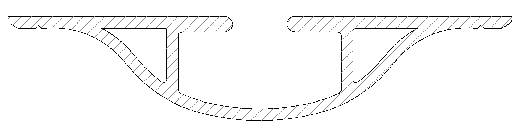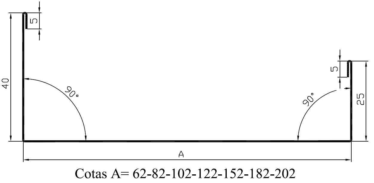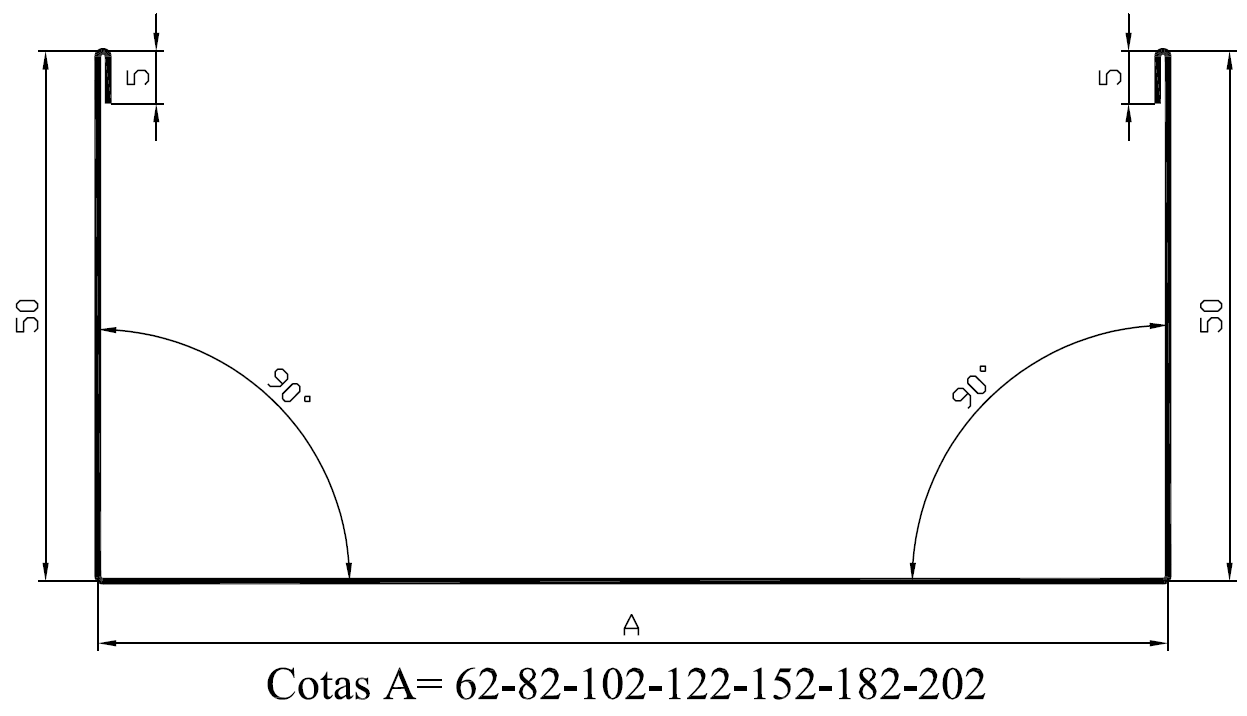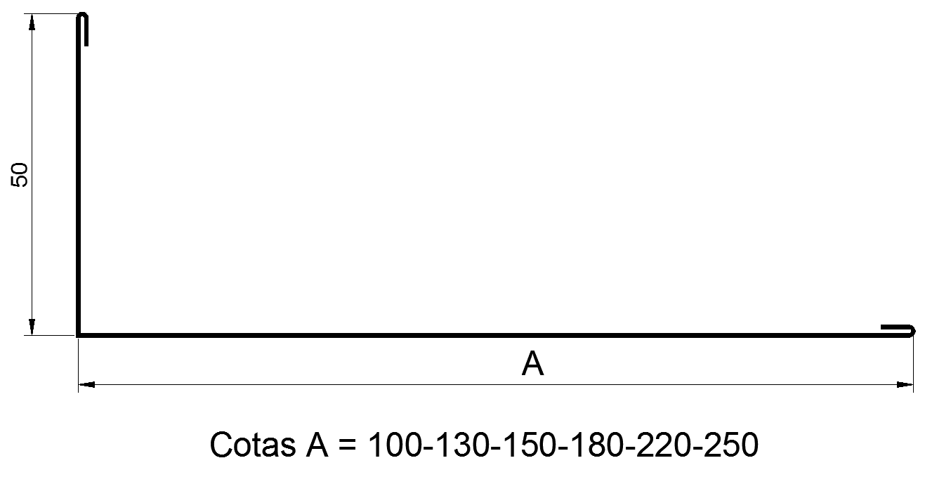 Concave profile made of 0.5 or 0.6 mm thick sheet steel, possibility of manufacturing in any type of sheet steel, be it white / colored lacquered sheet steel, stainless steel, sheet steel coated with PVC Food Safe, etc.